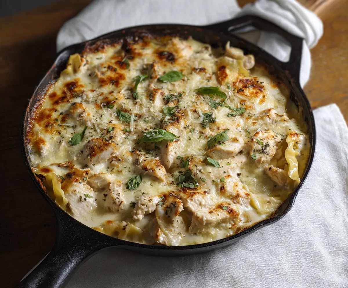 Enjoy your warm, cheesy, and creamy White Chicken Skillet Lasagna—a dish that’s perfect for family dinners or meal prepping for the week. Happy cooking!