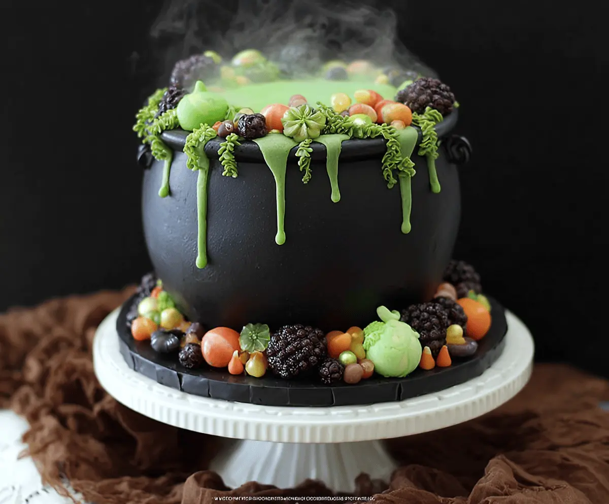 Your Witch Cauldron Cake is now complete! Serve it up at your Halloween gathering and watch everyone enjoy this magical and delicious treat!